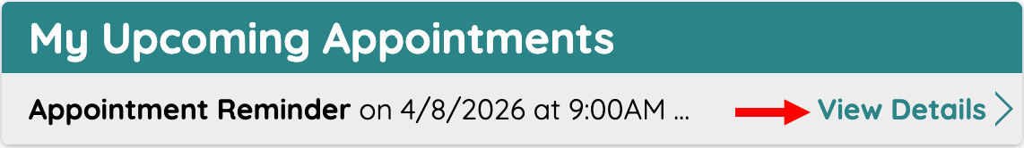 To view the appointment details, select View Details. The Appointments tab opens, where you can view all your upcoming and past appointments.