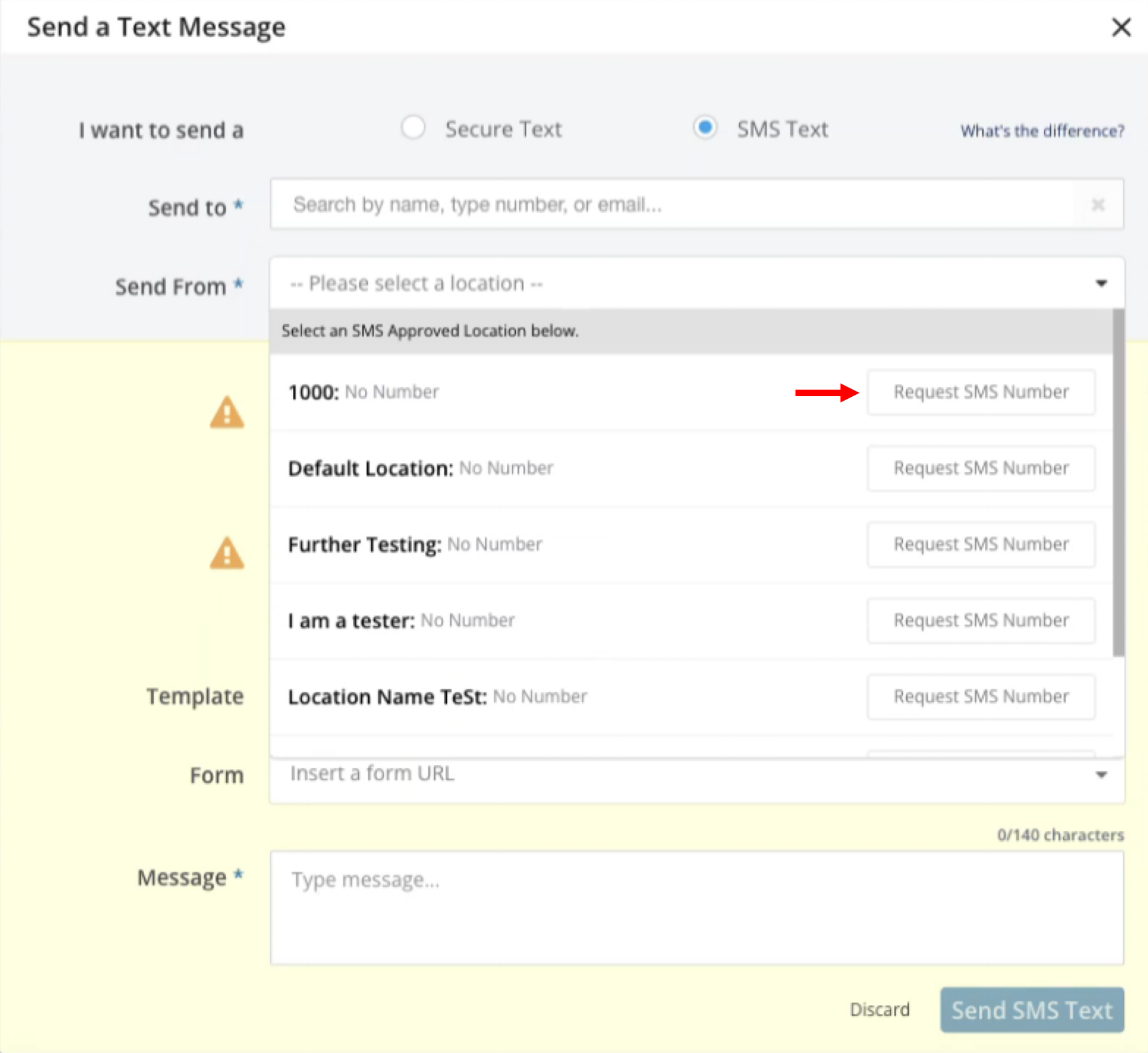 Request a Quick Send SMS phone number