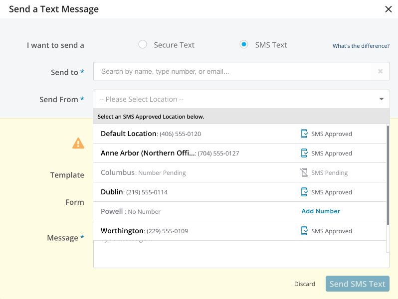 Depending on how your account is configured, you will see either the Send From or Assign to Queue dropdown. If you have multiple practice locations, you can have a different phone number for each location.